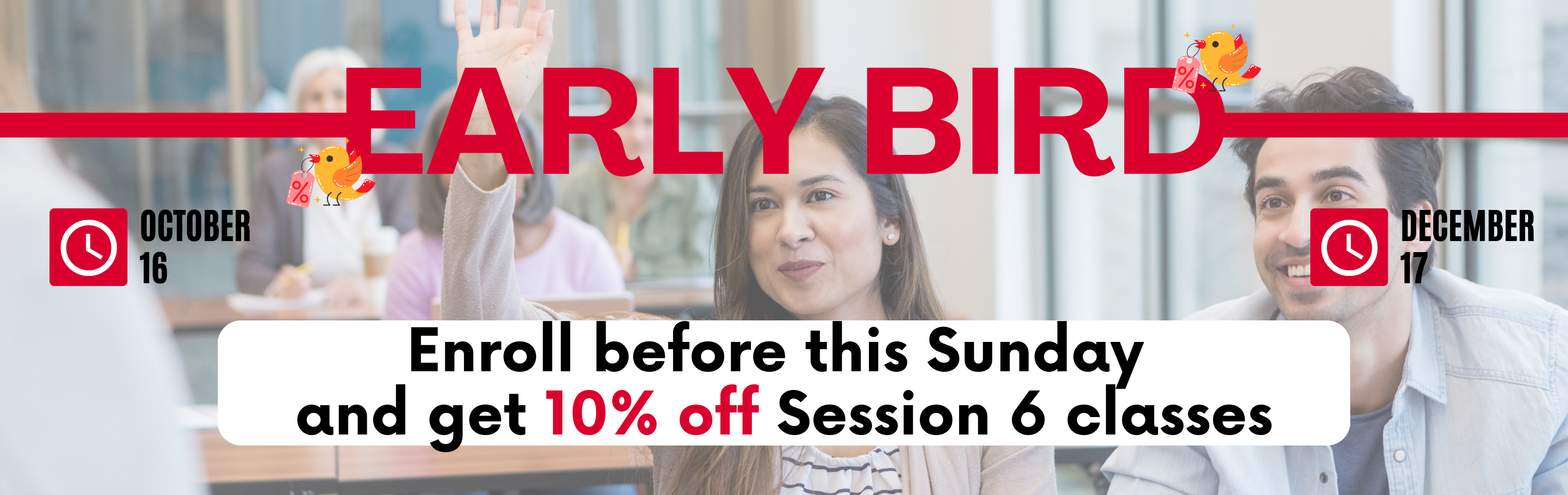 We also offer conversation classes, specific topic classes, corporate classes and private classes.