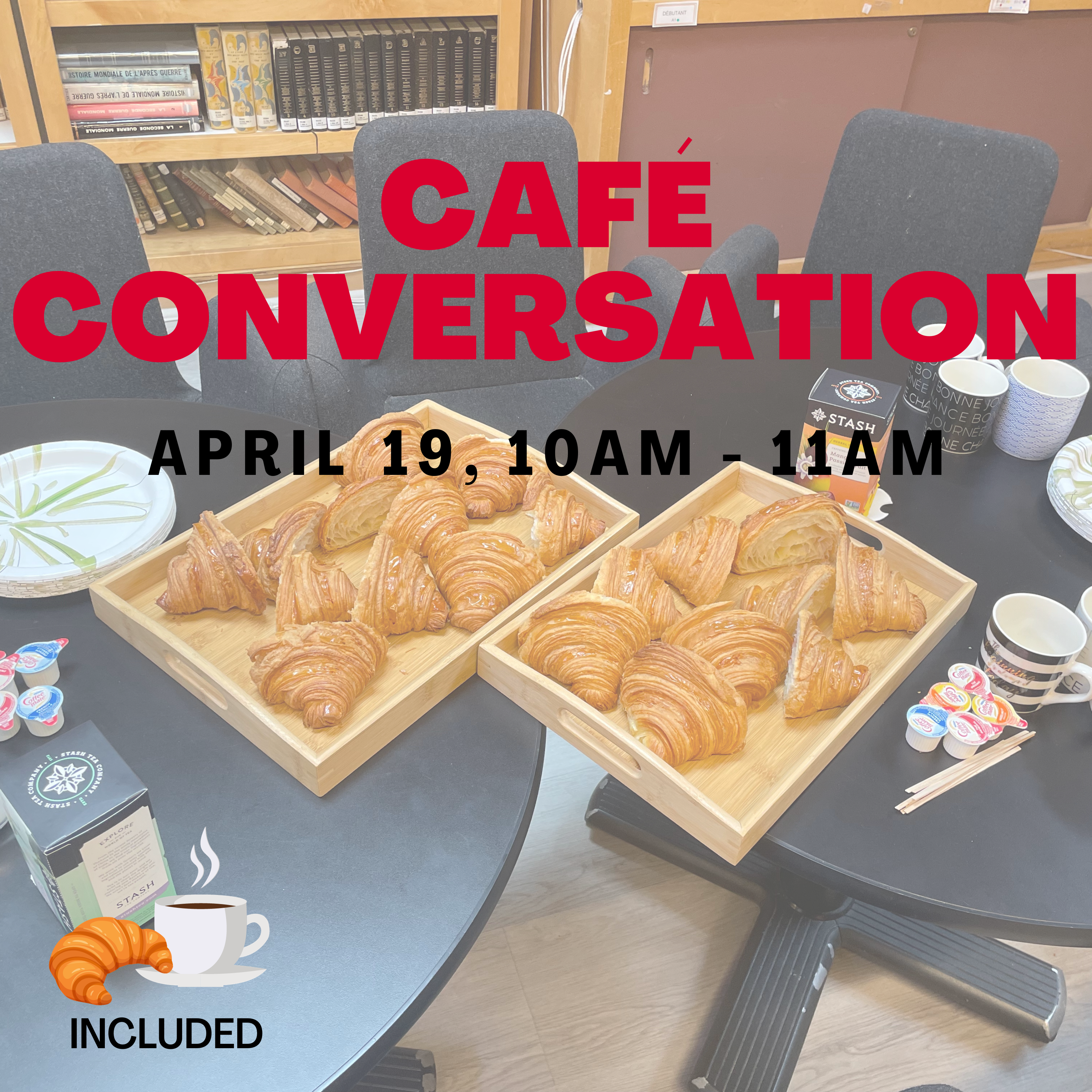 Every other Friday from 10:00am to 11:00am, let's meet in-person at the Alliance Francaise, to chat about a specific theme in French while sharing a cup of coffee or tea and a croissant.
