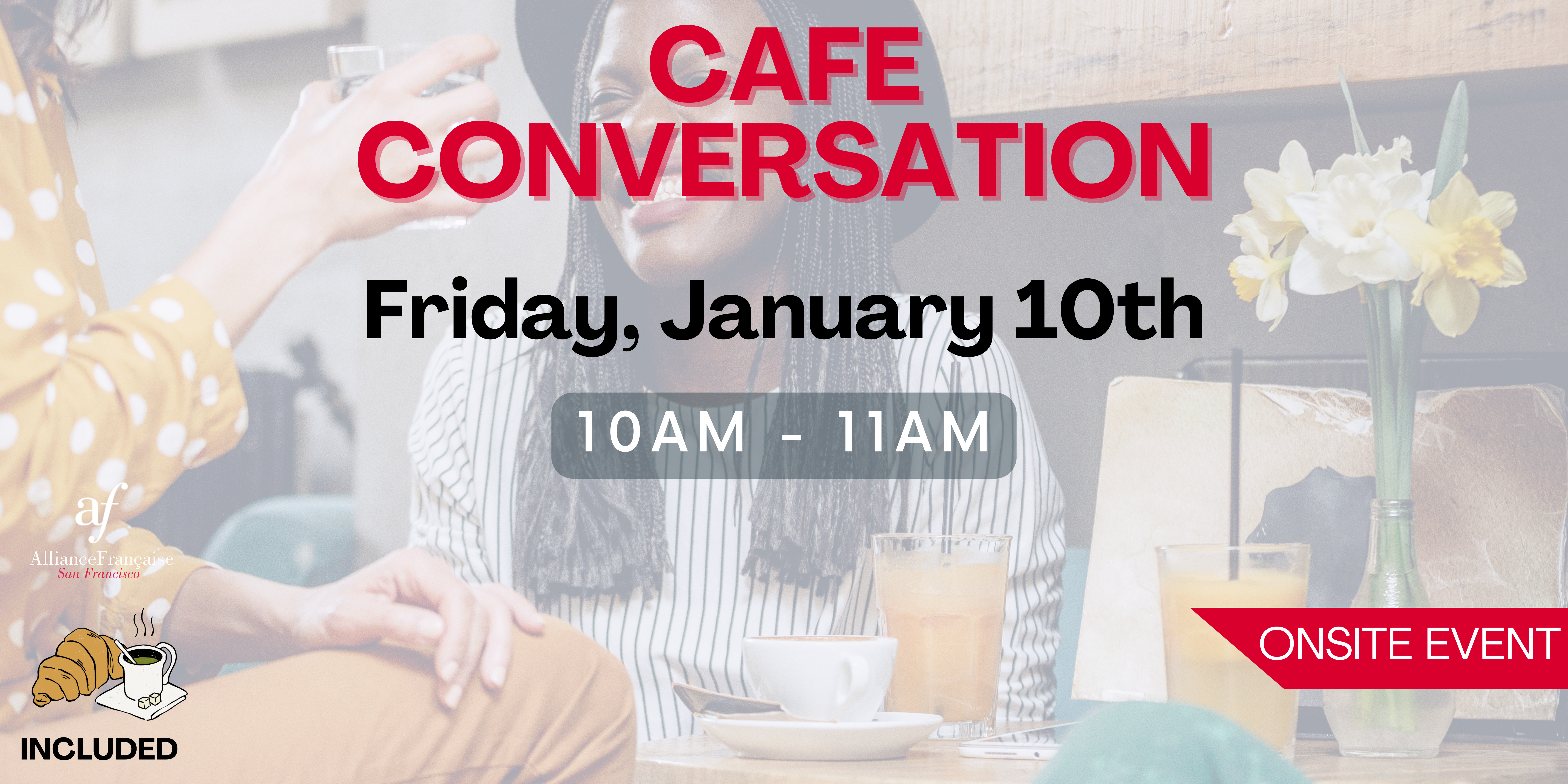 Every other Friday from 10:00am to 11:00am, let's meet in-person at the Alliance Francaise, to chat about a specific theme in French while sharing a cup of coffee or tea and a croissant.
