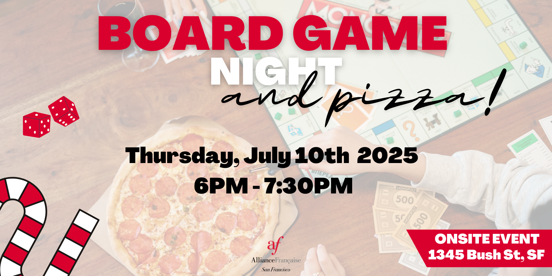 🎲 The Alliance Française de San Francisco is inviting you to a Bilingual Board Game Night in French! Come practice your French, "Clean Your Minds", release stress, renew energies and meet new people in an evening that is all fun, games and French! 🎲