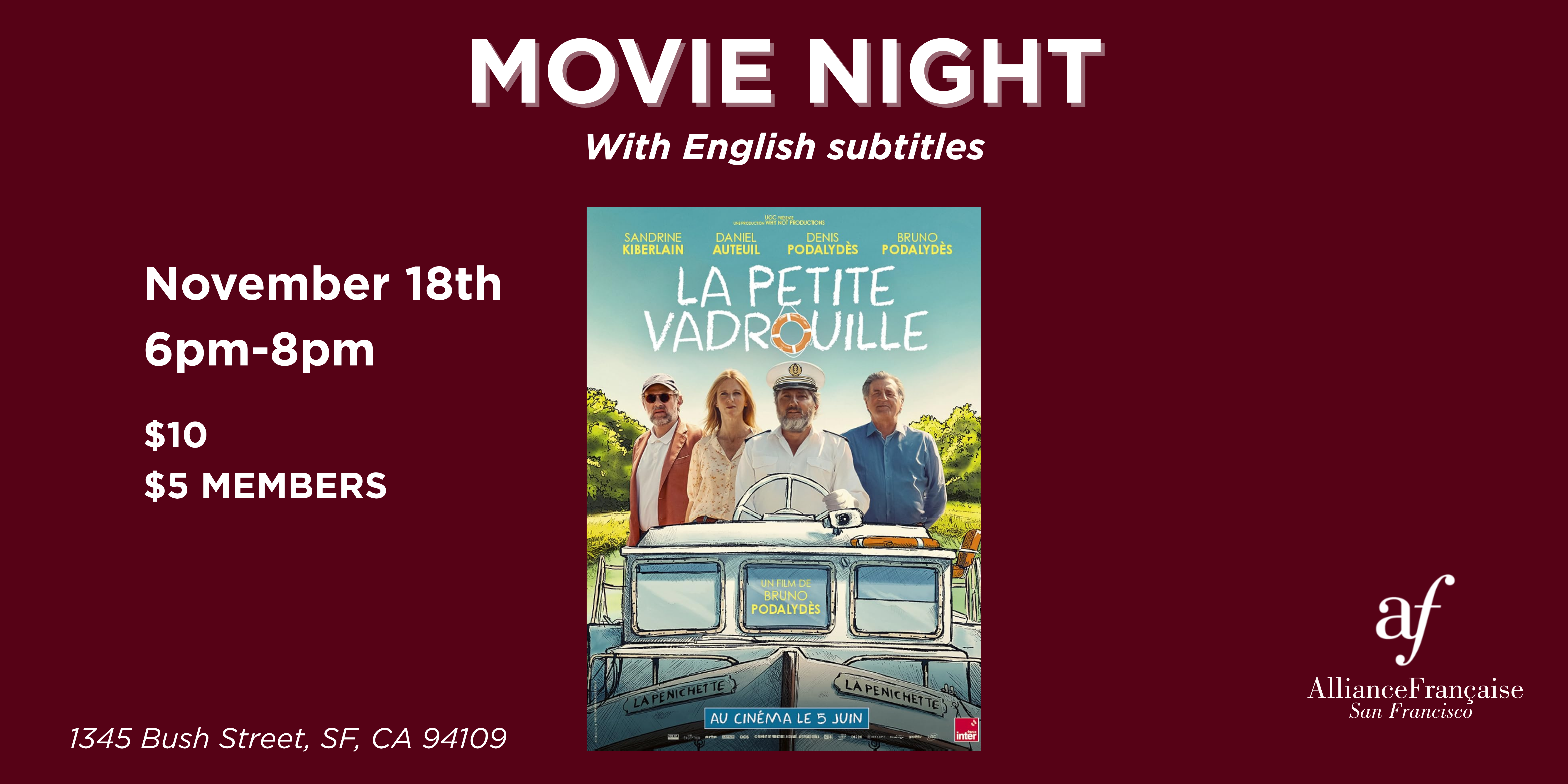 Where? Alliance Française de San Francisco, 1345 Bush Street, San Francisco, CA 94109