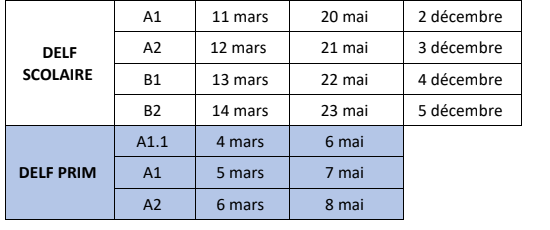 this is only for exams in schools. The DELF junior (at this Alliance Francaise is based on a different calendar)