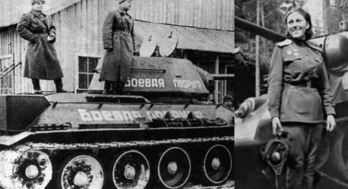 Elle a donc donné tout ce qu'elle avait à la banque soviétique, puis elle a écrit une lettre à Staline, demandant un char de combatte pour lutter contre les nazis.