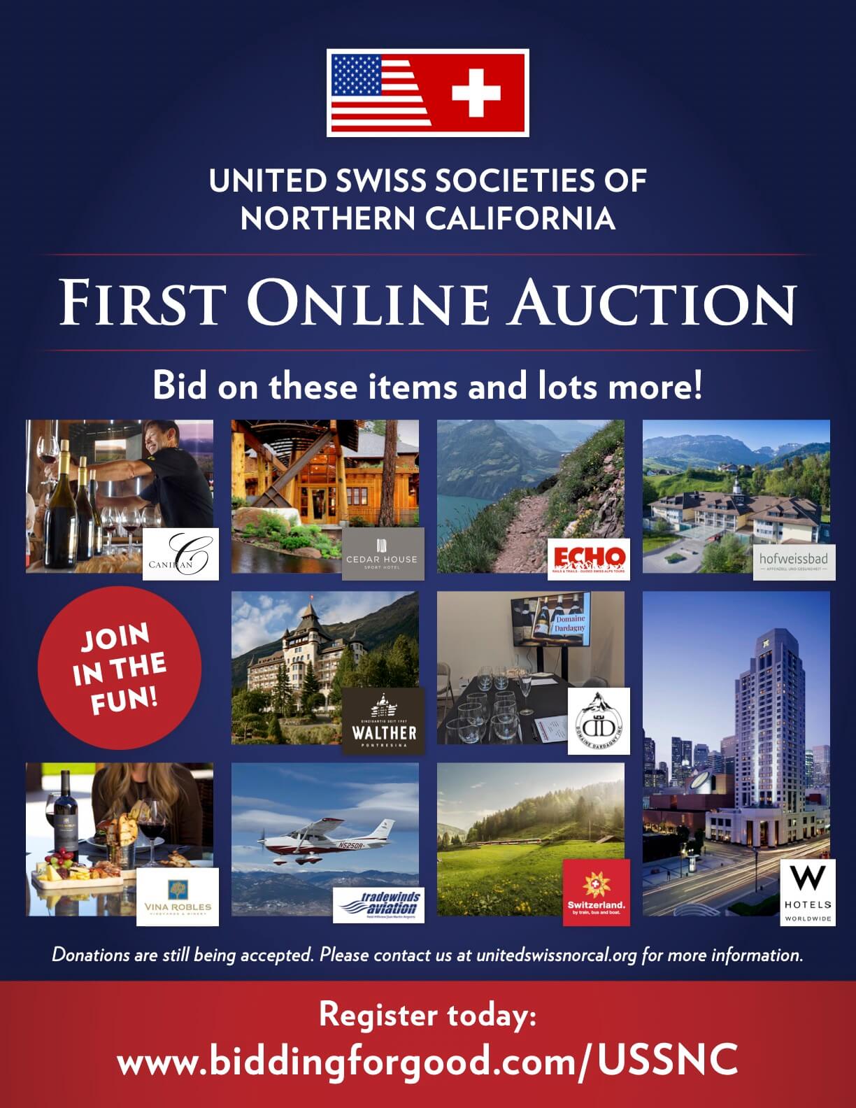 United Swiss Societies of Northern California, Inc. Proceeds will benefit the Swiss Clubs.