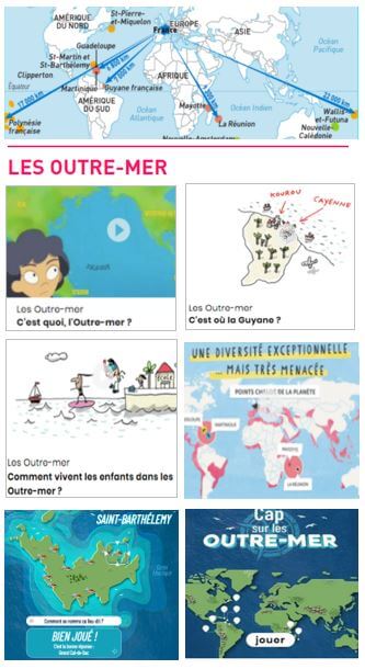 You can discover more about these fascinating French territories with engaging videos and interactive games on your AFSF Culturethèque e-library. Informative videos explain the differences in culture, lifestyle and seasonal climates found in the overseas territories. Since French Polynesia can be found on the other side of the earth, when children go to bed in Paris, the Polynesian French get up and go to school. And since the weather is often nice, they can go snorkeling or surfing after school. On the island of Reunion, the seasons are reversed, so children have their summer vacations from mid-December through February. In the West Indies, for Christmas, families do not eat turkey, but a pork stew. Be sure to play the fun game Cap sur les Outre-Mer (Heading Overseas) to learn about and practice your geography of the overseas territories. Identify the major cities and ports, famous beaches and rivers and of course volcanic mountains and then challenge yourself with a quiz to check your score.