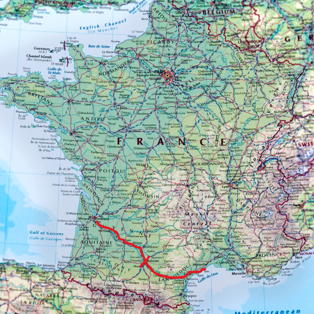 Canal du Midi, goes from Toulouse to Sète crossing 4 departments on 150 miles. Moreover, other sub canals are clung on to it making it even bigger.