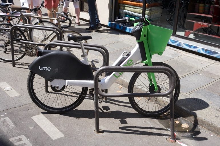 the city system with its own bike racks, while Lime (Uber) bikes can be found in the regular bike racks. For the Velib, you can get a