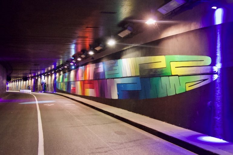 closed many years ago and this year the city turned it into a street art exhibit. In the tunnel, there is both a pedestrian route and a