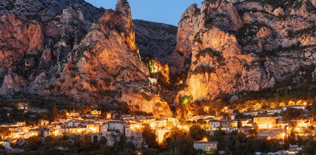 Some very pretty villages are worth a visit. Moustiers-Sainte-Marie is at the base of the cliffs. Esparron-du-Verdon is located at the edge