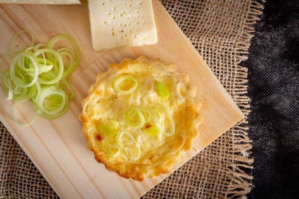 - Étalez le mélange poireaux-lardons sur le fond de tarte précuit. Versez ensuite le mélange œufs-crème par-dessus.