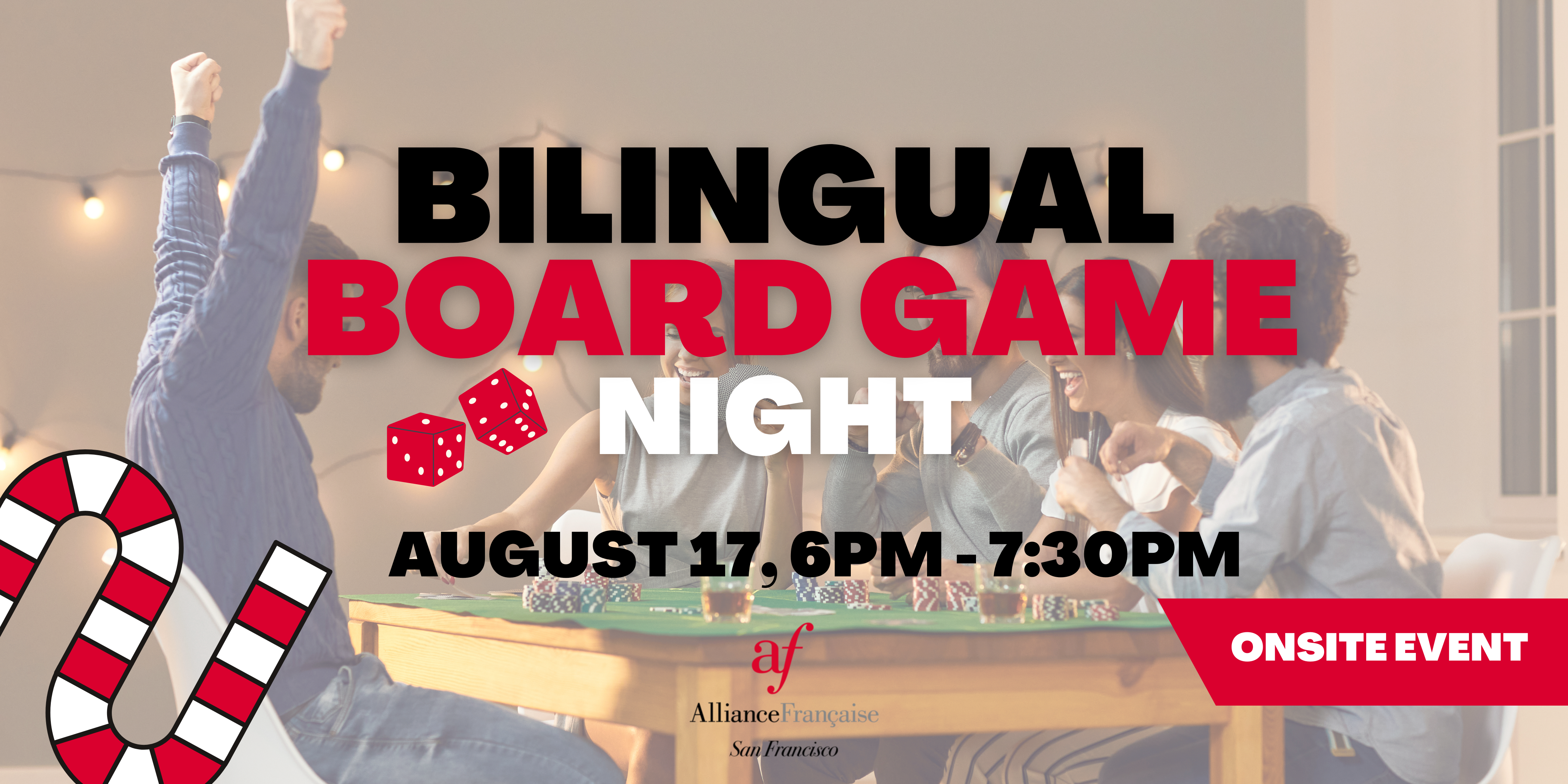 🎲 The Alliance Française de San Francisco is inviting you to a Bilingual Board Game Night in French! Come practice your French, "Clean Your Minds", release stress, renew energies and meet new people in an evening that is all fun, games and French! 🎲