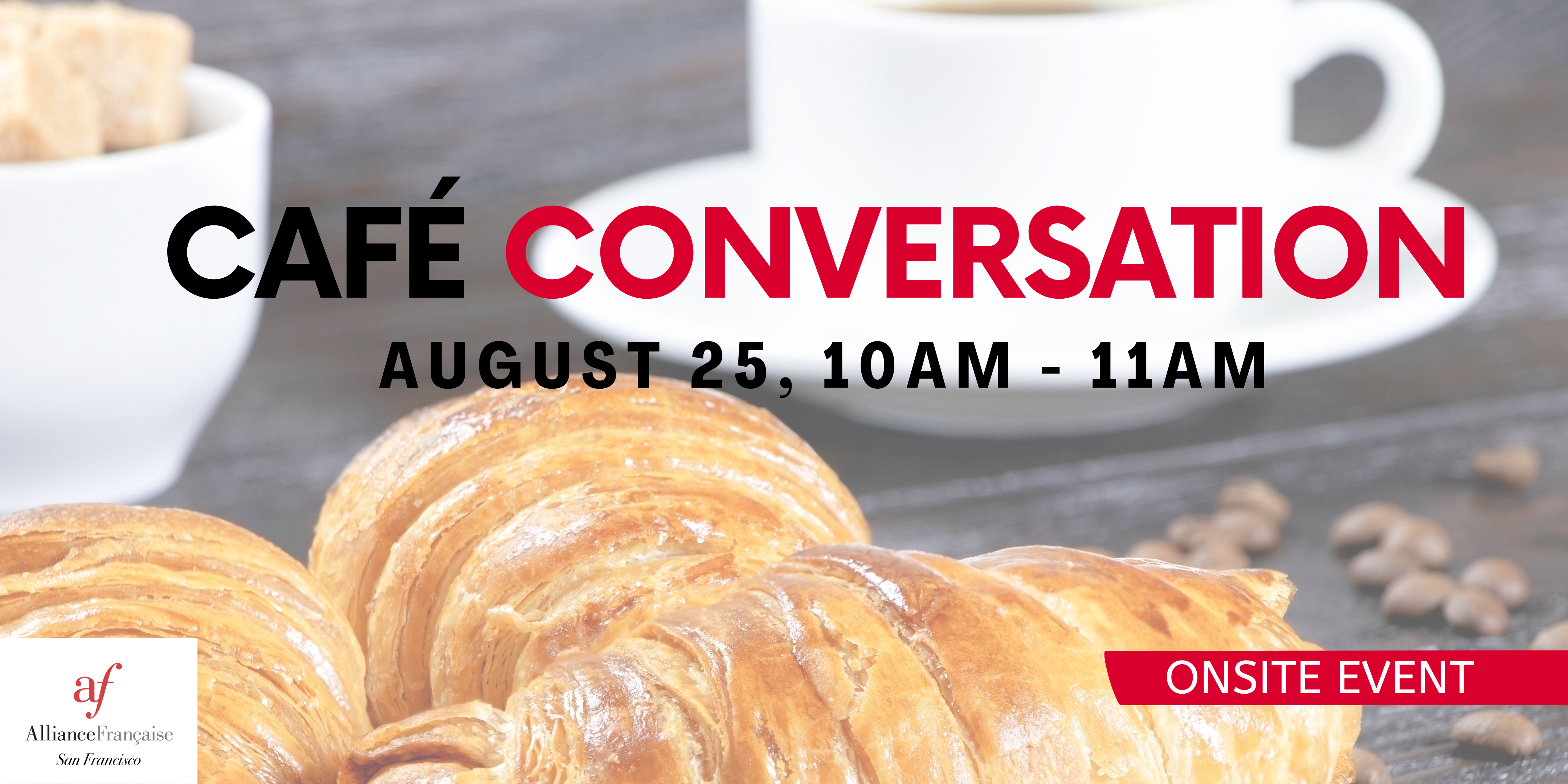 Every other Friday from 10:00am to 11:00am, let's meet in-person at the Alliance Francaise, to chat about a specific theme in French while sharing a cup of coffee or tea and a croissant.