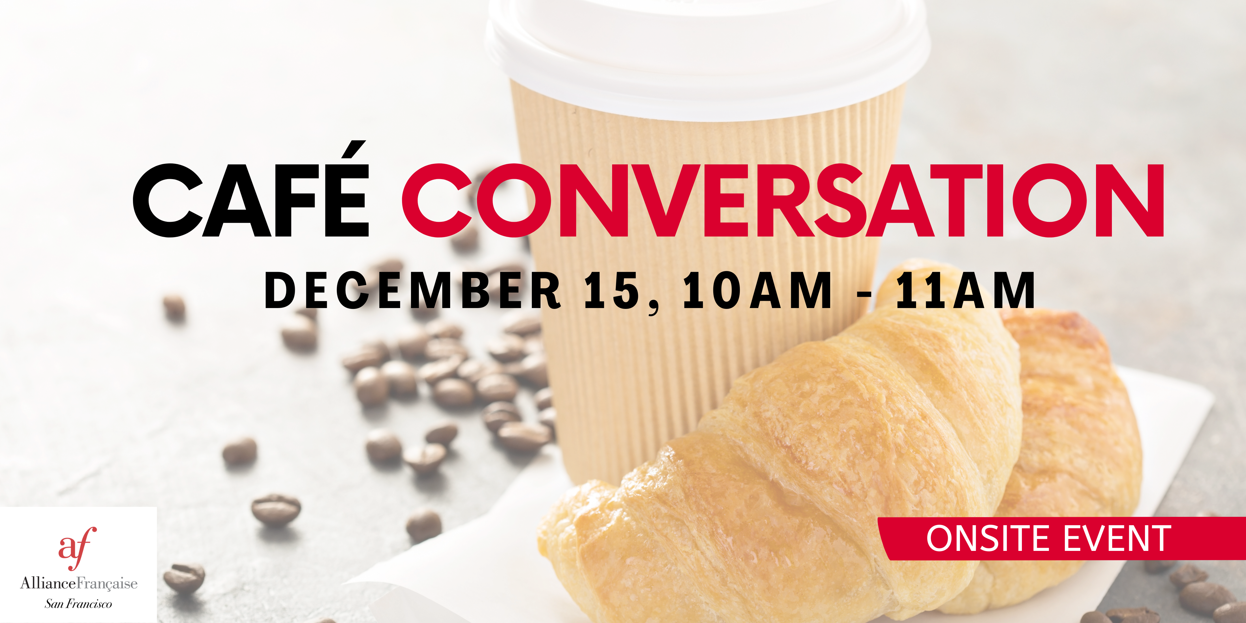 Every other Friday from 10:00am to 11:00am, let's meet in-person at the Alliance Francaise, to chat about a specific theme in French while sharing a cup of coffee or tea and a croissant.